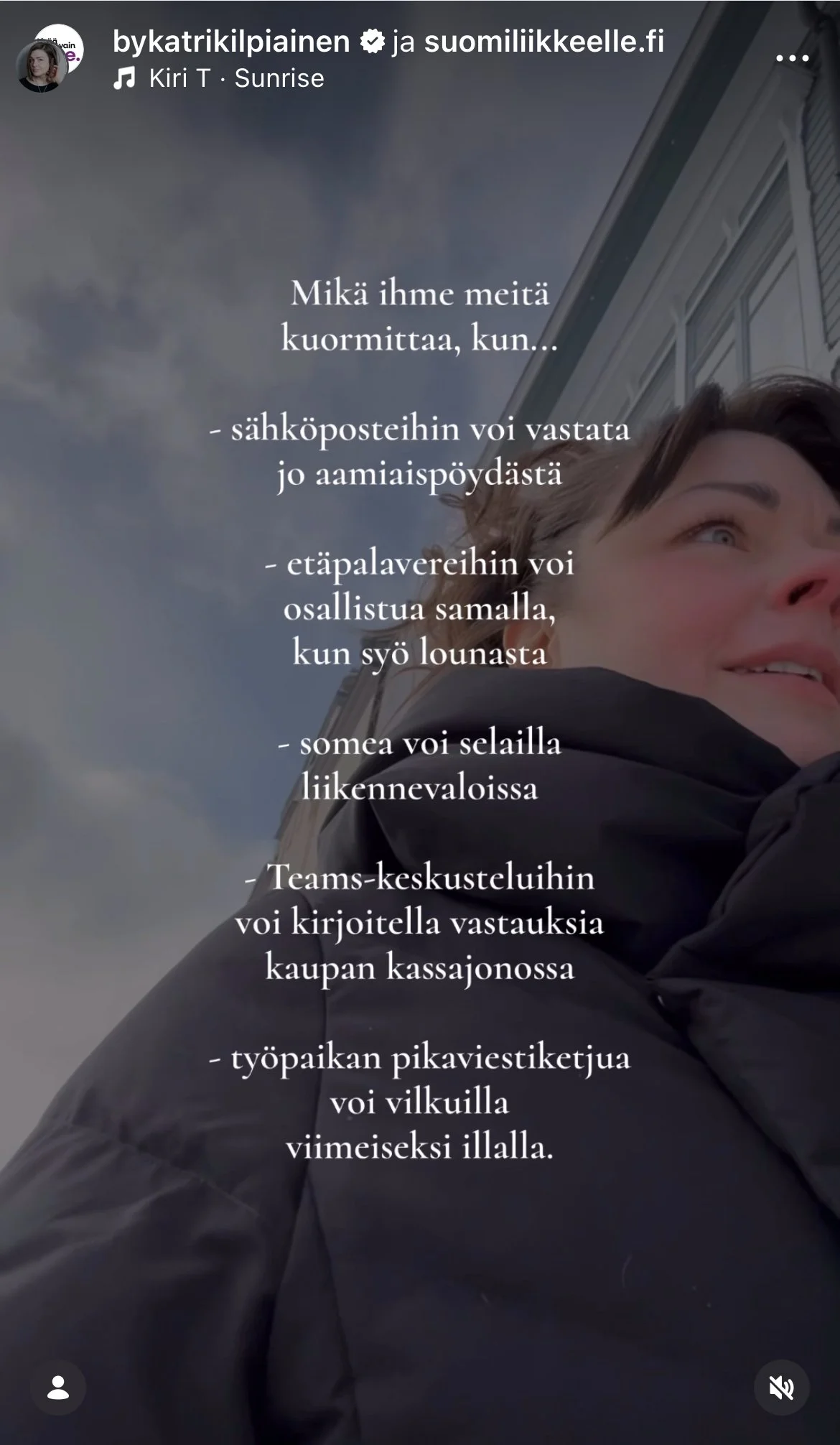Tilini @bykatrikilpiainen tavoittaa yleisön, joka ei etsi tehokkuusvinkkejä vaan rohkeutta elää elämäänsä ilman turhaa suorittamista.